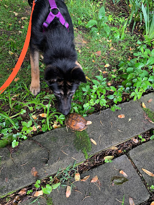 At her last checkup a few days ago Faye weighed 30 pounds. Tasha and Tony report that their boy dogs are about 70 pounds now. Big boys. Faye is little but she's active and healthy, no complaints from the doctor.